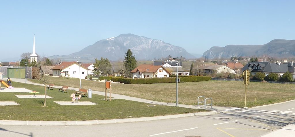 Tournée vers la vallée du Rhône, elle est située en bordure du plateau de la Semine, bordée à l'Est par la montagne du Vuache, une chaîne dorsale de 13 km de long, d'altitude 700 à 1 101 m, délimitant l'extrême sud-ouest du bassin genevois.